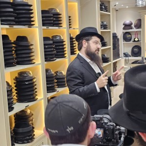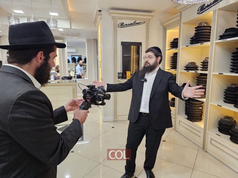הזמר החב"די בני פרידמן בצילום קליפ מיוחד בחנות בורסלינו בקראון הייטס, לקראת אירוע של ארגון 'להחיות' שיתקיים בירושלים בסוף חודש אלול. צילום: מענדי עקיבא