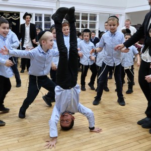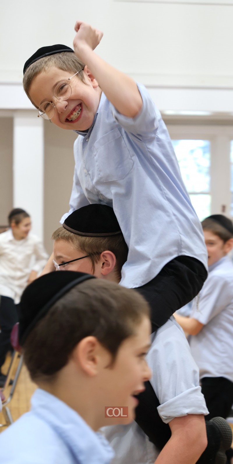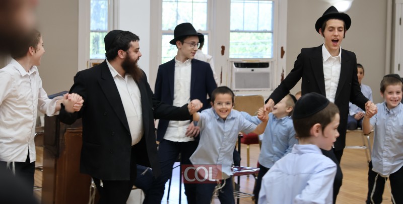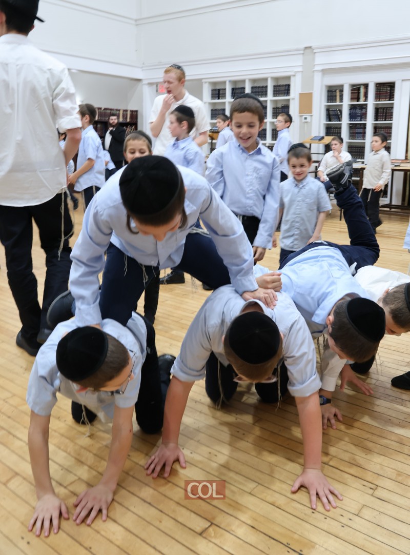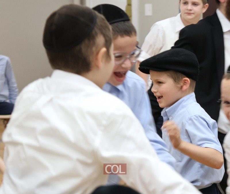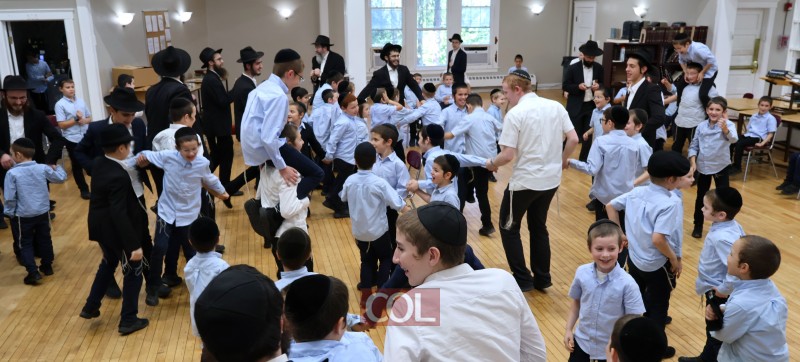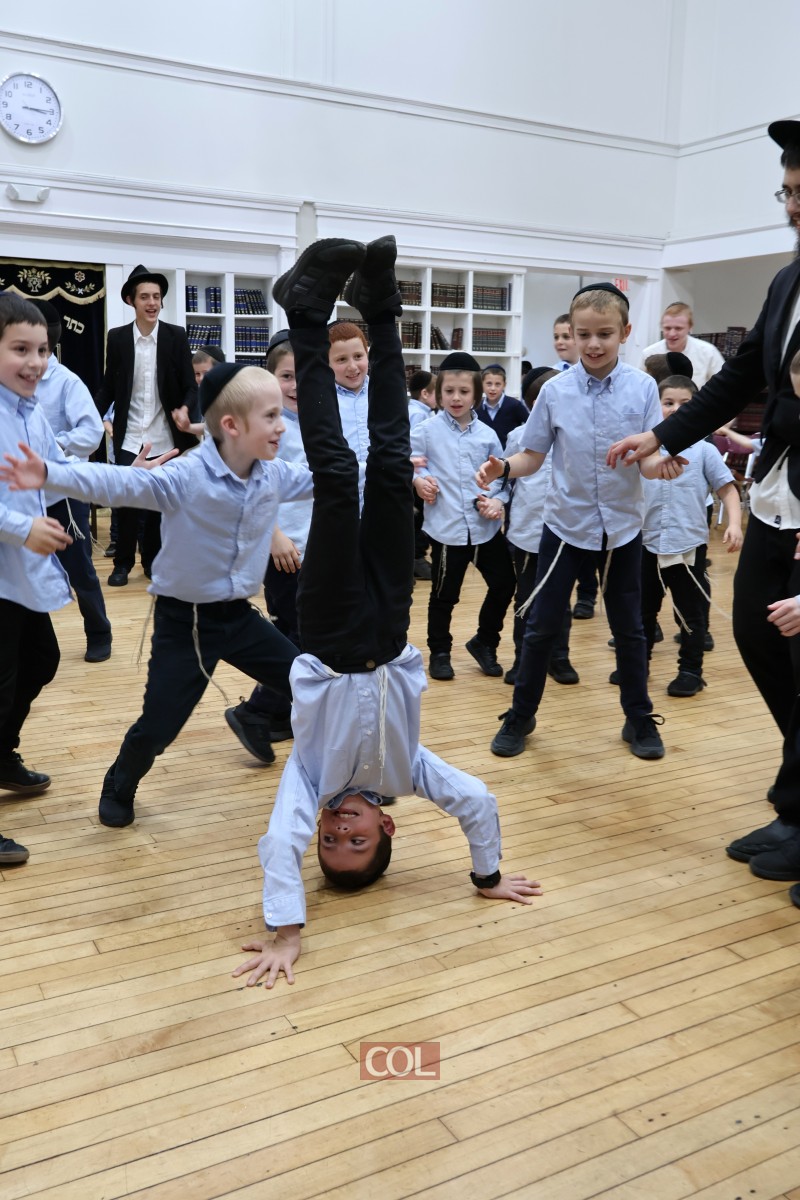 לאחר 'התוועדות' קטנה בה דיברו התמימים בישיבה עם הילדים על גודל היום ועוררו את כולם על ההשפעה של היום על כל אחד ואחד, פצחו תלמידי החיידר יחד עם תלמידי הישיבה בריקודים ממושכים.