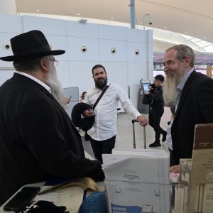 ימים אחרי שפרש מתפקידו כחבר מועצת העיר קרית מלאכי ונציג חב"ד בוועד הקהילה: ר' לוי רסקין מנחלת הר חב"ד בדוכן חב"ד בשדה התעופה קנדי שבניו יורק, בדרכו לארץ הקודש