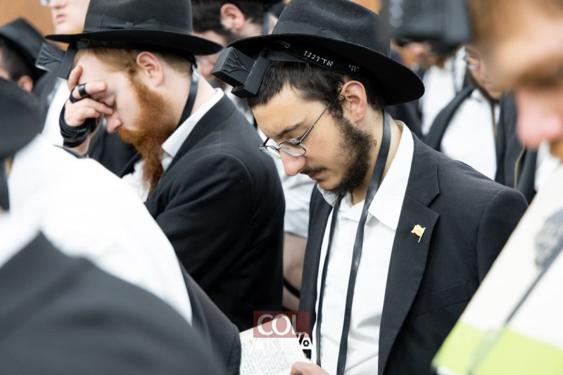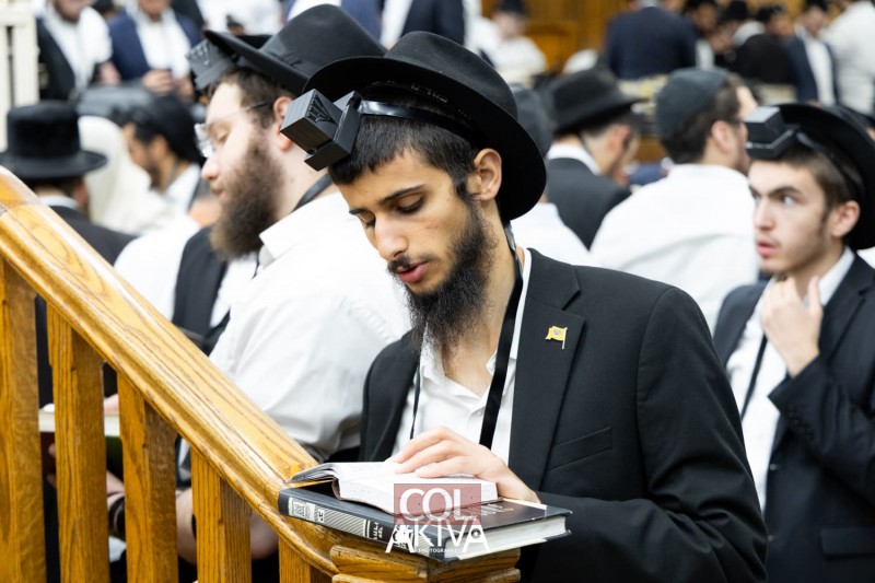 אלול בחצרות קדשינו: מאות תמימים, בהם בחורי 'קבוצה תשפ"ו' החדשים לצד הוותיקים וציבור אנ"ש, בתפילת שחרית, בוקר יום הבהיר ח"י אלול, בבית מדרשו של הרבי 770, ברוקלין ניו יורק | צלם COL לחצרות קדשינו מנדי עקיבא, הסתובב עם מצלמתו בין המתפללים ומגיש תיעוד מיוחד ובלעדי