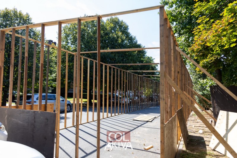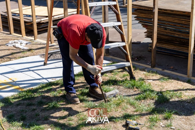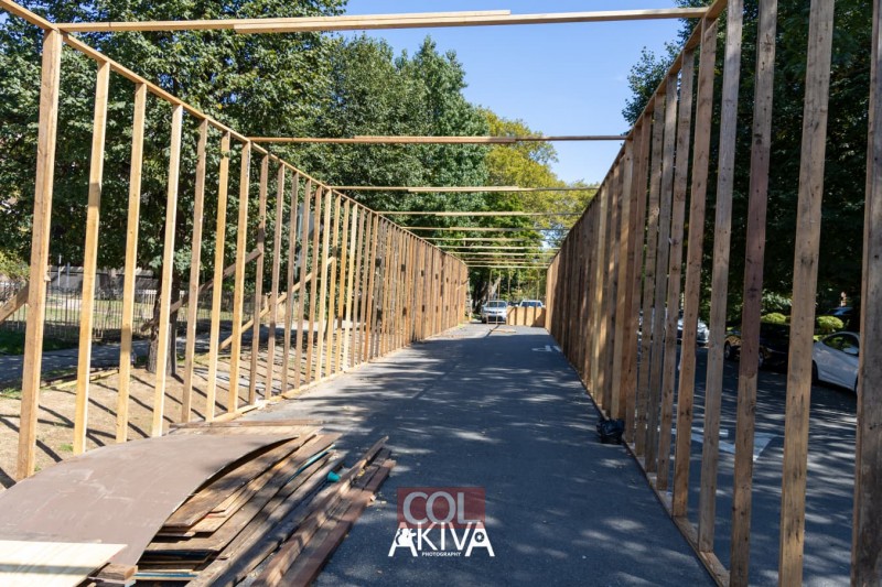 סוכת הענק בחזית ביתו של ר’ משה רובשקין בקראון הייטס הולכת ונבנית, לקראת קליטת האורחים הרבים הצפויים לסעוד בה בחג הסוכות | גם השנה צפויים אלפי "אורחי המלך" ליהנות מהכנסת האורחים של משפחת רובשקין, ביד רחבה וכמיטב המסורת | צלם COL בחצרות קדשינו מנדי עקיבא, מגיש תיעוד נוסף מההכנות