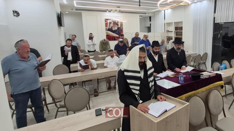 התוועדות הכנה ואמירת סליחות ראשונות בבית חב"ד בשכונות הצפוניות בגן יבנה, בראשות השליח הרב מנדי מגמי ובהשתתפות השליח ליישוב ומנהל בית חב"ד המרכזי בגן יבנה הרב שניאור זלמן קורנט