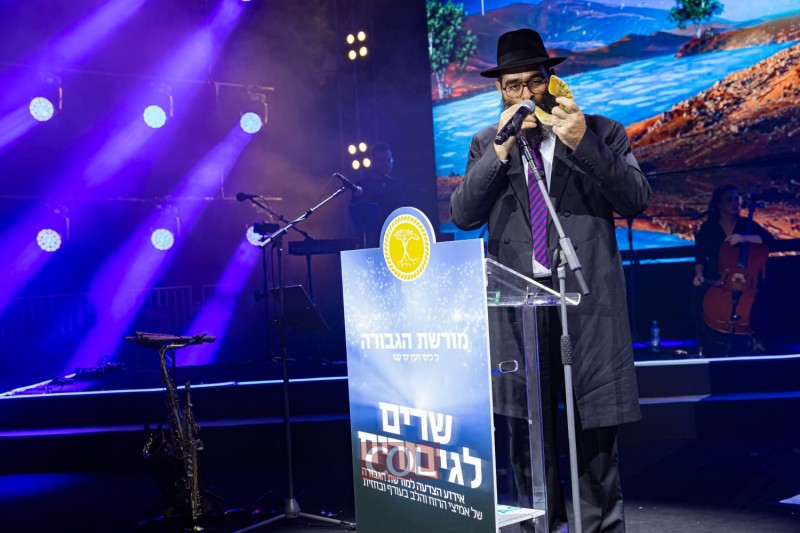 על רקע צלילי "ניגון השלוחים", התכבדו השלוחים הרב רסקין, הרב הנדל והרב אייזנבאך, לעלות על הבמה ולקבל את אות "מגן השליחות" מהשר למורשת הרב אליהו.