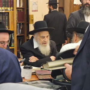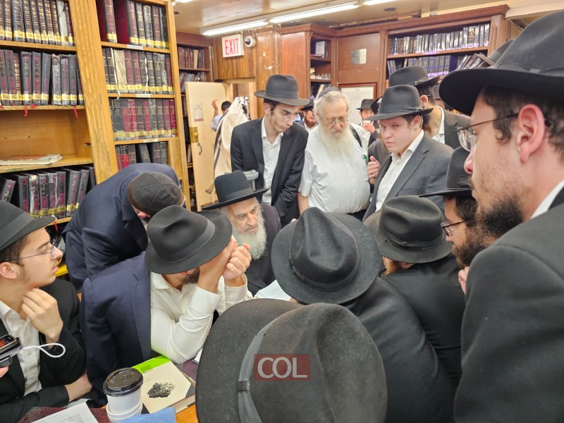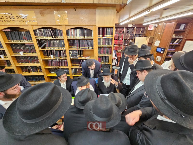 הגה"ח הרב אליהו לנדא, מראשי ישיבת תות"ל המרכזית בכפר חב"ד השוהה בחצרות קדשינו לקראת תשרי, ב'שקלא וטריא' בגמרא עם התמימים ב-770. צילום: מנדי עקיבא, COL