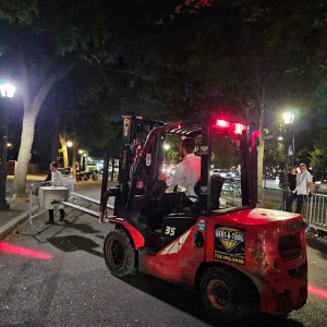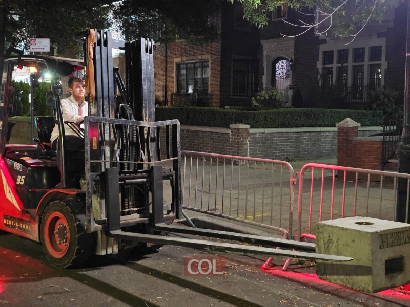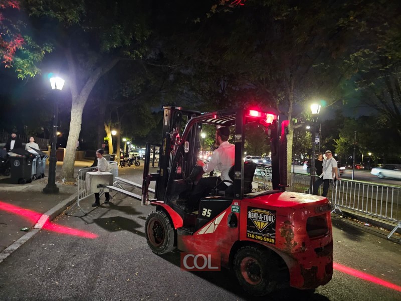 רחוב הסרוויס בחזית 770 נסגר לתנועת כלי רכב ובשטח החלו העבודות להקמת אוהל התפילות והלימוד עבור מאות התמימים שיגיעו לחודש תשרי אצל הרבי (צילום: מענדי עקיבא)