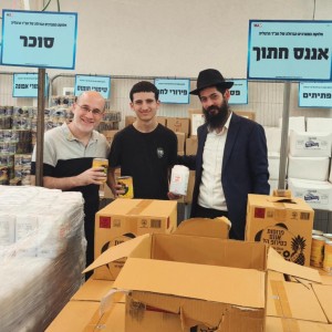המצווה השנתית: חבר מועצת העיר הרצליה ודובר איגוד השופטים בהתאחדות הכדורגל - ירון עולמי, מסייע יחד עם בנו בהכנת חבילות מזון לנזקקים עם אנשי חב"ד בעיר
