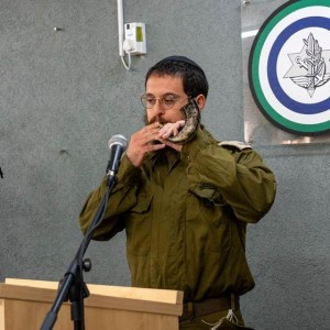 שליח הרבי במרכז הרפואי אסף הרופא (שמיר) הרב מנדי בקרמן מזכה את חיילי הבסיס בו הוא משרת, בתקיעת השופר בטקס הרמת כוסית לרגל ראש השנה