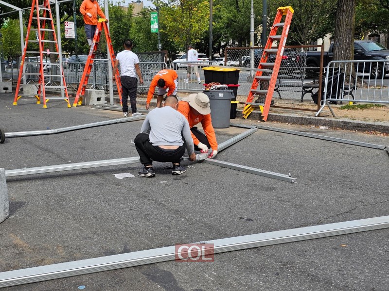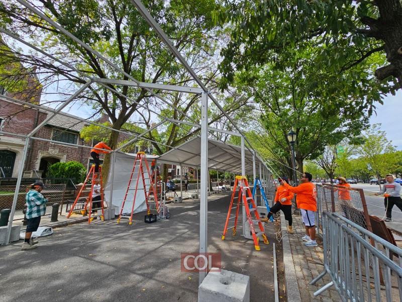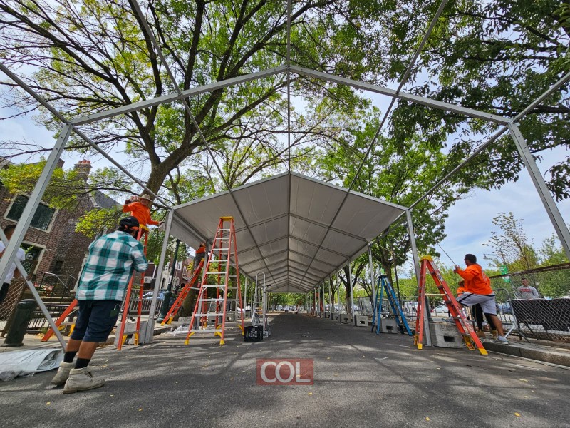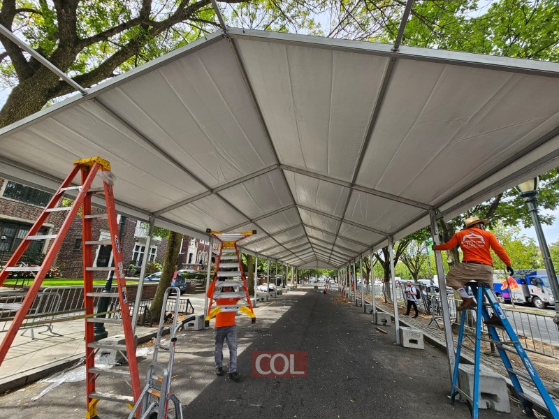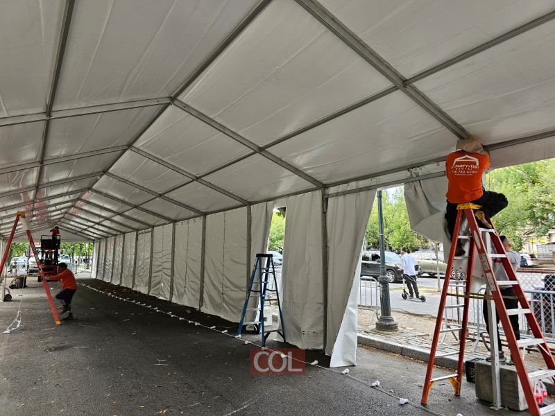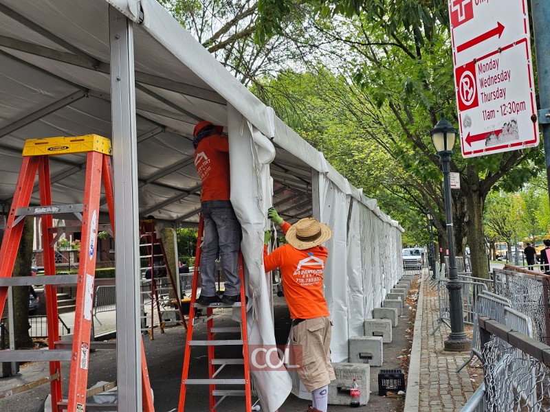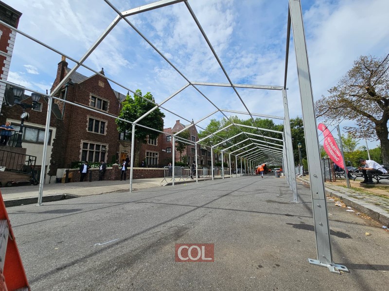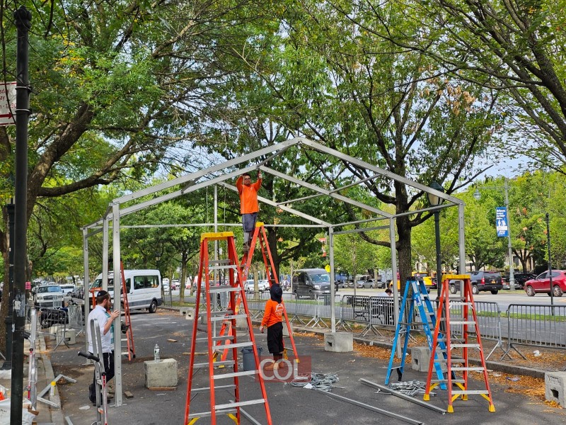 כבר כמה שנים שימים ספורים טרם חודש חגי תשרי נבנה ומוקם אוהל ענק באורך עשרות מטרים בחזית 770 שבניו יורק, אוהל מאוורר ומואר המשמש את אלפי התמימים ואנ"ש בתפילות וסדרי הלימוד יום ולילה • הצלם מענדי עקיבא מגיש תיעוד ממלאכת הבנייה