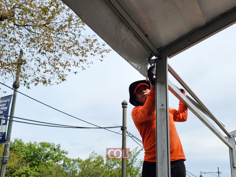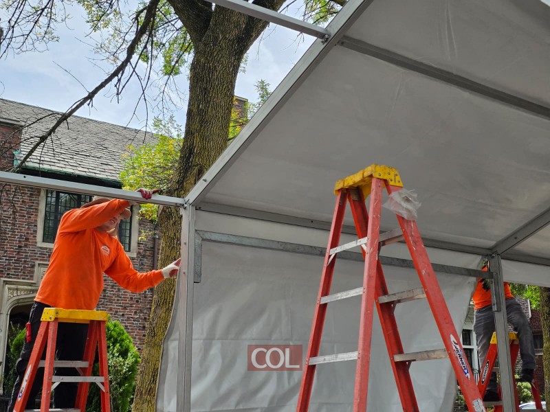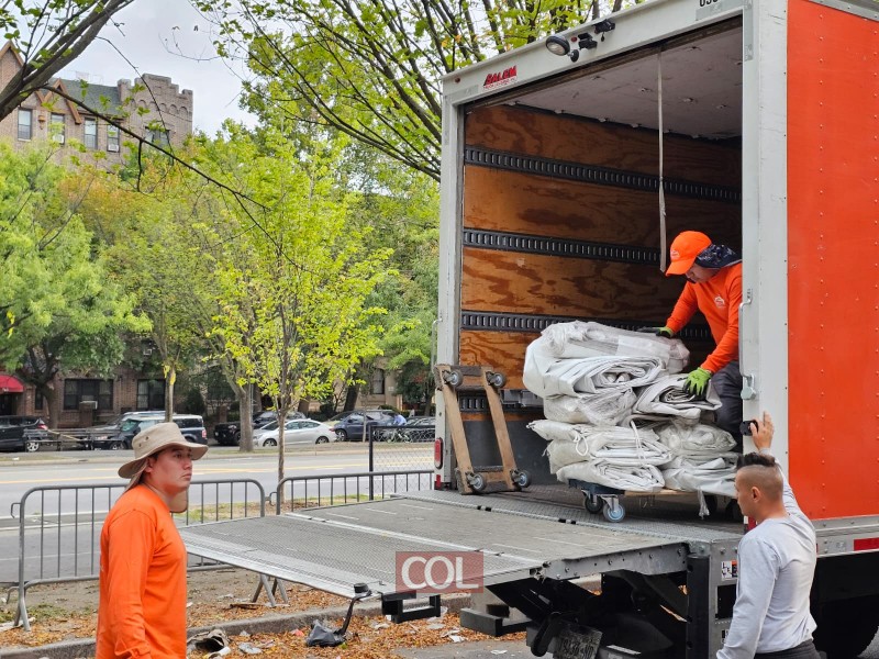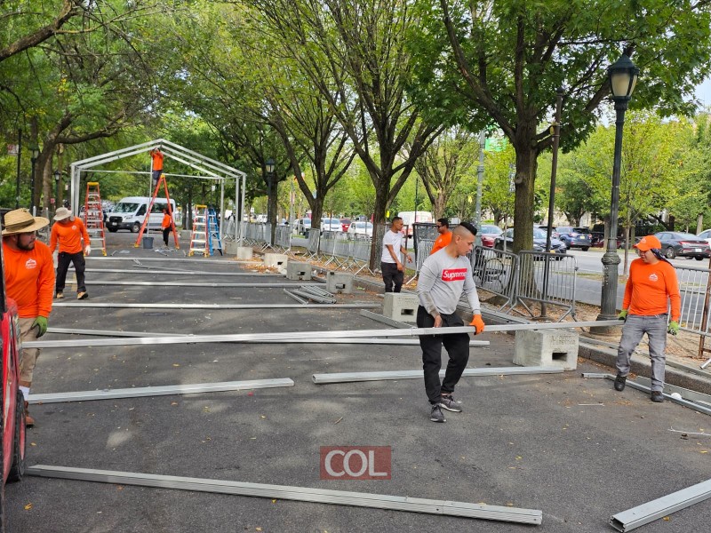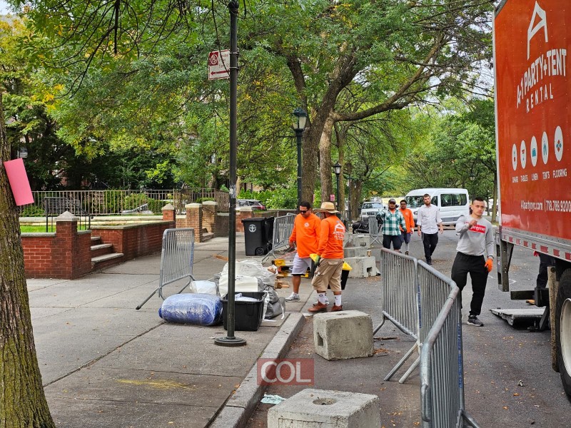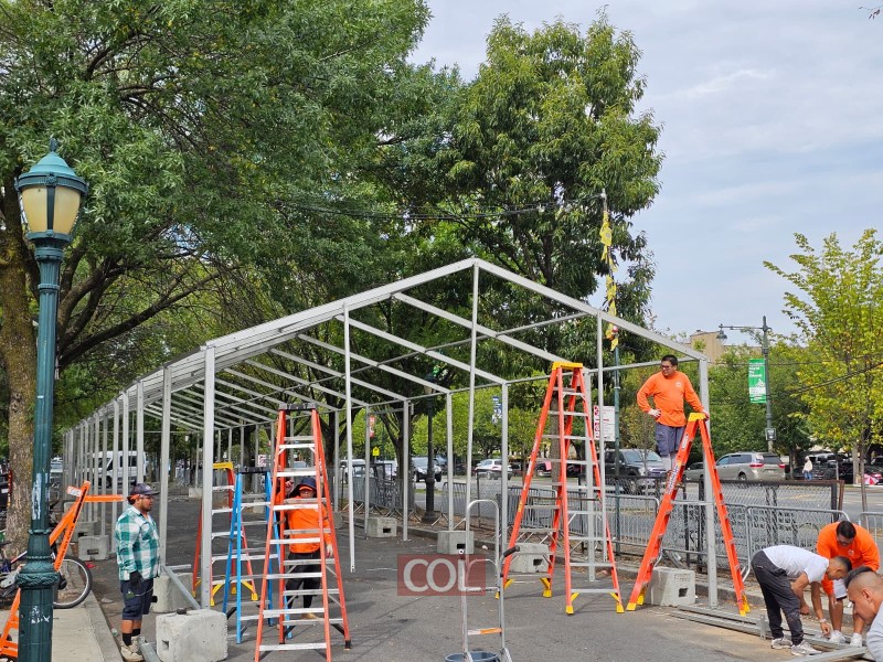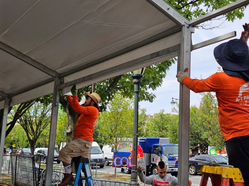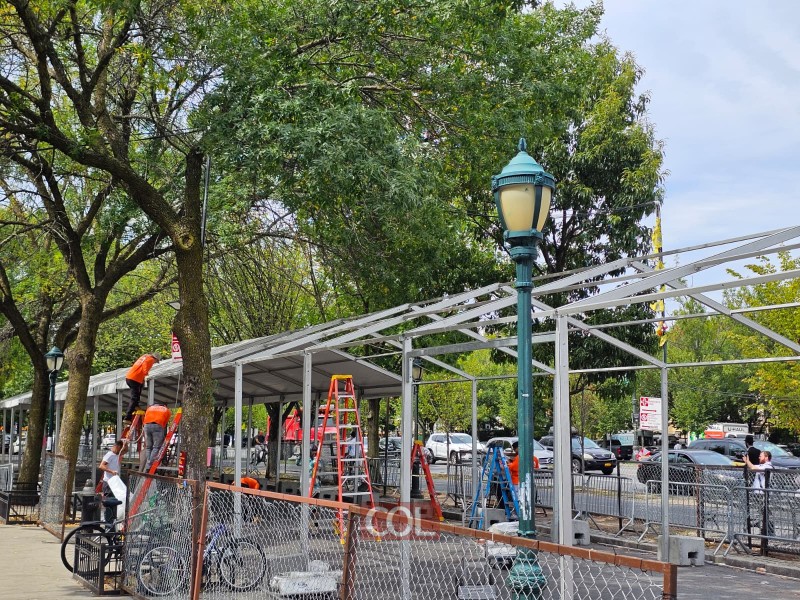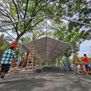 כבר כמה שנים שימים ספורים טרם חודש חגי תשרי נבנה ומוקם אוהל ענק באורך עשרות מטרים בחזית 770 שבניו יורק, אוהל מאוורר ומואר המשמש את אלפי התמימים ואנ"ש בתפילות וסדרי הלימוד יום ולילה • הצלם מענדי עקיבא מגיש תיעוד ממלאכת הבנייה