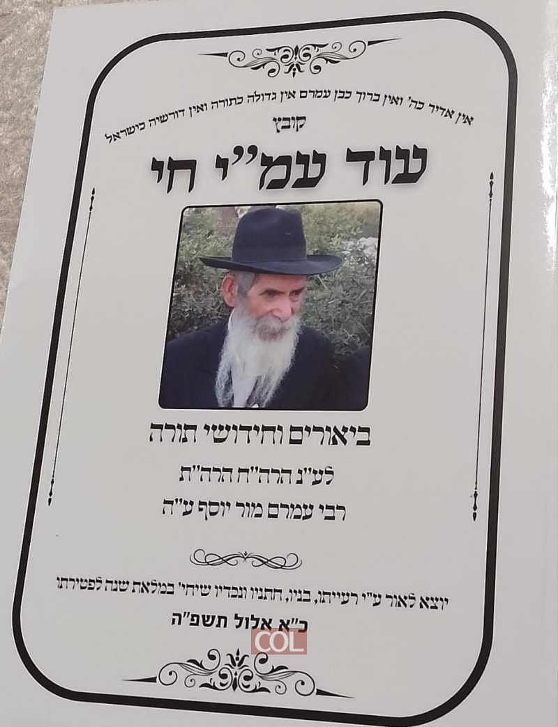 לרגל יום השנה הראשון יצא לאור קובץ 'חידושי תורה' מהודר ''עוד עמ''י חי'' מבניו, חתניו, נכדיו וחתניהם שי', שחולק במהדורה ראשונה. ימליץ טוב על כל יוצ''ח ומוקירי זכרו.
