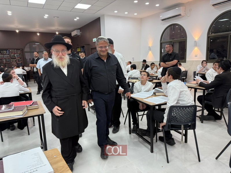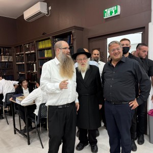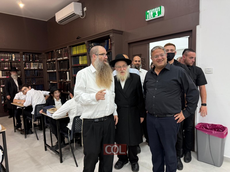 השר לביטחון לאומי ח״כ איתמר בן גביר לביקור מיוחד בישיבת תומכי תמימים חב״ד בקריית גת | השר נכנס לישיבה בליווי חבר מועצת העיר ר' זלמן הכט, קיבל את פניו רב העיר, ראש הישיבה וחבר בית הדין הגה"ח הרב משה הבלין