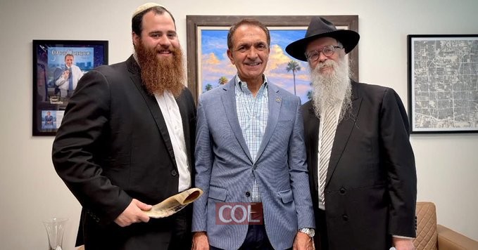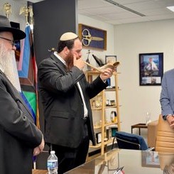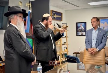אור לגויים: הרב משה מאיר ליפשיץ - שליח הרבי ומנהל בית חב"ד בפורט לודרדייל שבפלורידה, בתקיעת שופר ואיחולי שנה טובה לראש העיר בלשכתו