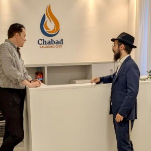 הזמר אוהד מושקוביץ בתפילות מנחה ומעריב בבית חב״ד בזלצבורג שבאוסטריה, בראשות השליח הרב מנחם גרוזמן, טרם הופעתו בעיר