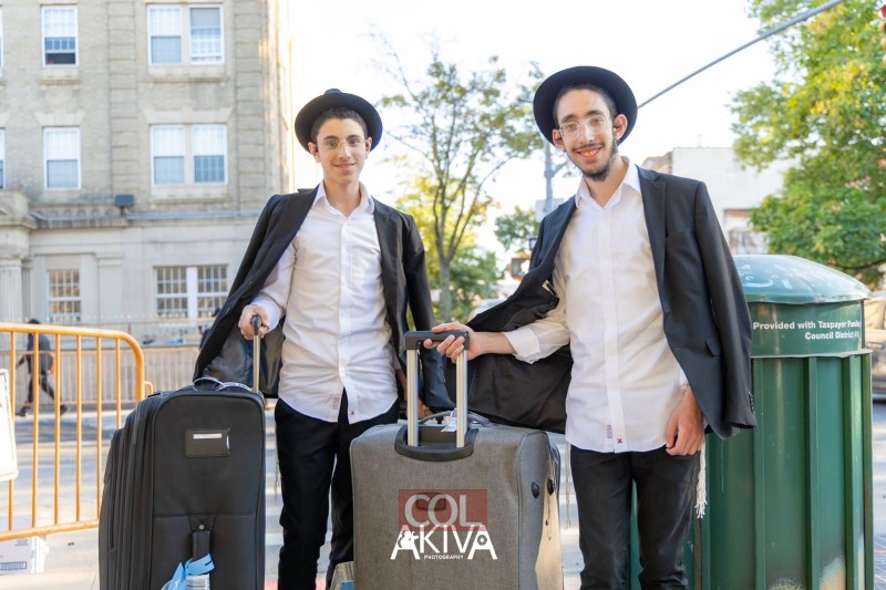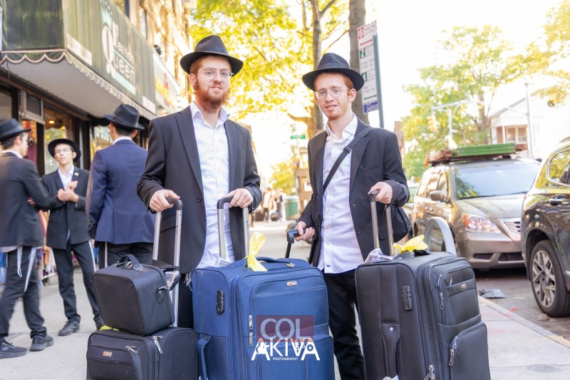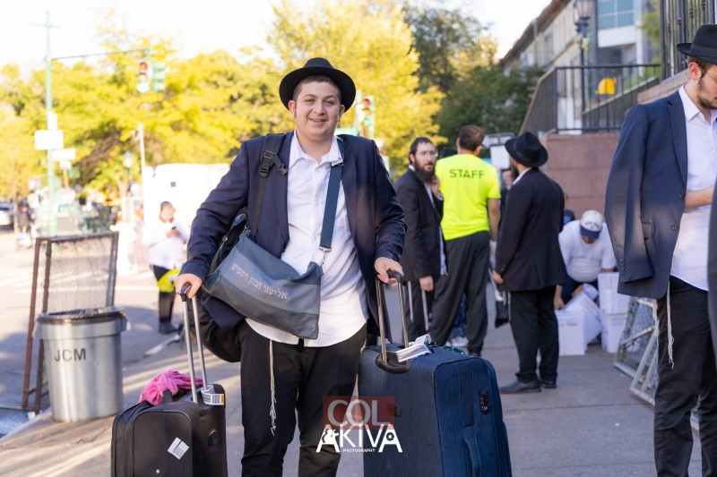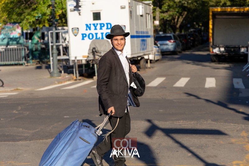 מאות המזוודות בכניסות ל-770, בית מדרשו של הרבי בברוקלין ניו יורק, מעידות יותר מכל על הנהירה הגדולה של בחורים 'תמימים' מכל העולם, לחצרות קדשינו ולשהייה בחודש החגים בבית מדרשו של הרבי | צלם COL מנדי עקיבא מגיש תיעוד מהאווירה, התמימים שהגיעו זה עתה ומצטרפים ללימוד ותפילות ב-770, התמונות המשותפות, החיוכים וההתרגשות