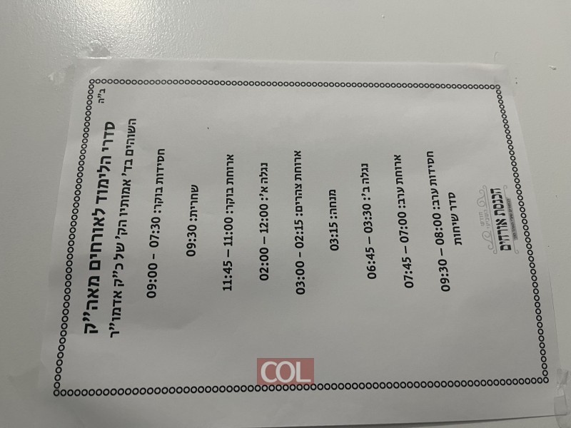 בכל ימות השבוע, המערך מקיים סדרי לימוד, כשבחור מבוגר רושם את שמות המשתתפים בסדר על מנת לדווח על כך לרבי.