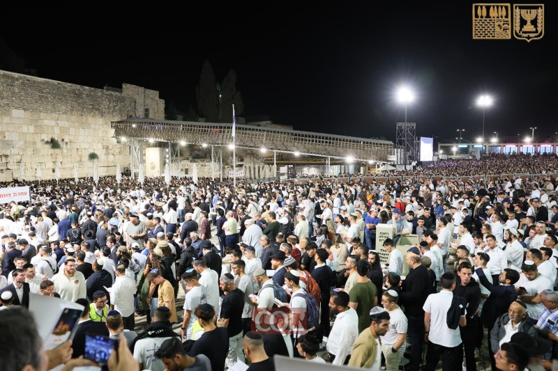 רבבות השתתפו במעמד הסליחות המרכזי הלילה ברחבת הכותל המערבי במעמד שורדי שבי ובני משפחות החטופים (צילום: הקרן למורשת הכותל המערבי)