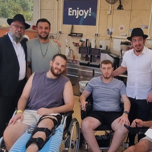 הם ביקרו יחד את החיילים הפצועים בשיקום והעניקו להם מתנות הניחו איתם תפילין ותקעו בשופר.