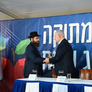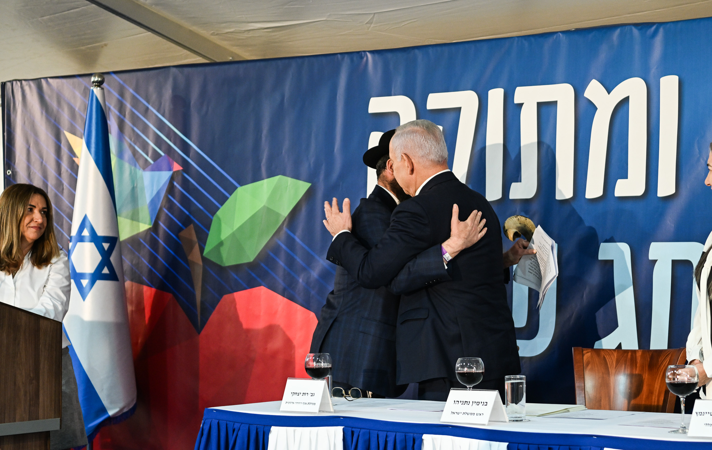לקראת נסיעתו לאו"ם, ראש הממשלה בנימין נתניהו קיים הבוקר (ראשון) טקס הרמת כוסית במשרדו לרגל השנה החדשה | הרב מנחם מנדל אופן, שליח הרבי לצה"ל וכוחות הביטחון, הביא את ברכת הרבי, תקע בשופר והזכיר את הקשרים האישיים של רה"מ עם הרבי משנות כהונתו כשגריר באו"ם | הרב אופן הפתיע את נתניהו והזכיר פרט מעניין מההקפות המפורסמות של נתניהו אצל הרבי