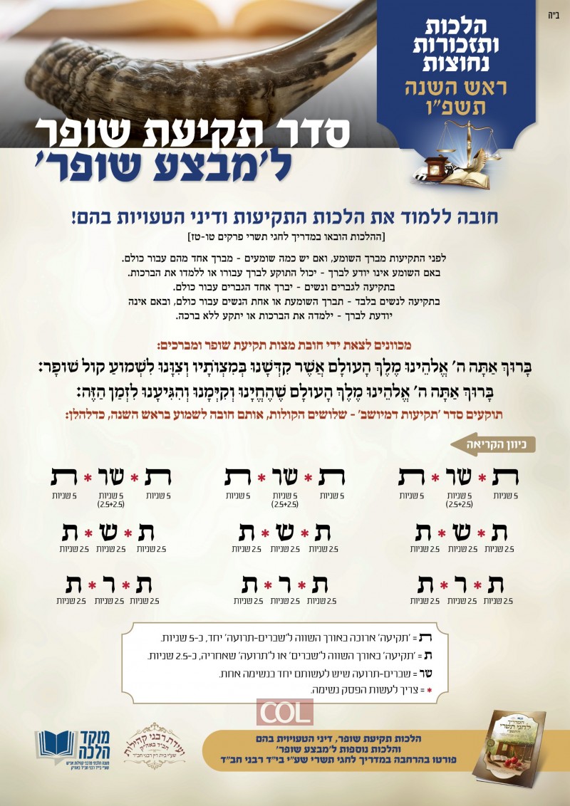 את זה כדאי לקחת למבצעים בראש השנה: תקציר כללי של סדר תקיעת שופר במבצע שופר, שלב אחר שלב, מפורט וברור | מתוך המדריך ההלכתי המקיף והאיכותי של 'מוקד הלכה' שע"י בית דין רבני חב"ד לחודש תשרי תשפ"ו