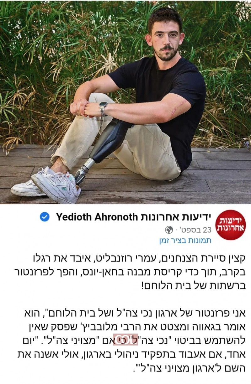 עמרי מאמין הגיעה העת לממש אותו חזון ולשנות את השפה, שתשפיע גם על התודעה. "אם יום אחד אקבל הזדמנות לנהל את הארגון, אולי אזכיר לרבים שהמילה 'נכה' שייכת לעבר", הוא אומר בחיוך. "כי מי שנתן את גופו למען עם ישראל – הוא מצויין, לא פחות מזה."