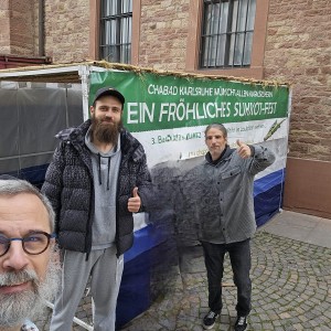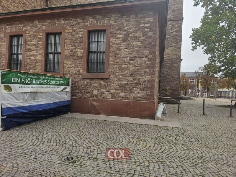 עוד לפני שבת קודש: שליח הרבי בקרלסרוהה שבגרמניה הרב מדרכי מנדלסון בנה את הסוכה ברחובה של עיר ביחד עם חברי קהילתו - לזיכוי הרבים בחג הסוכות