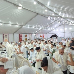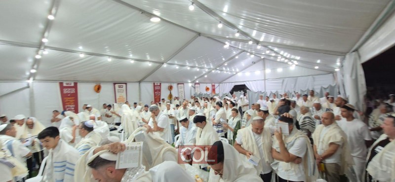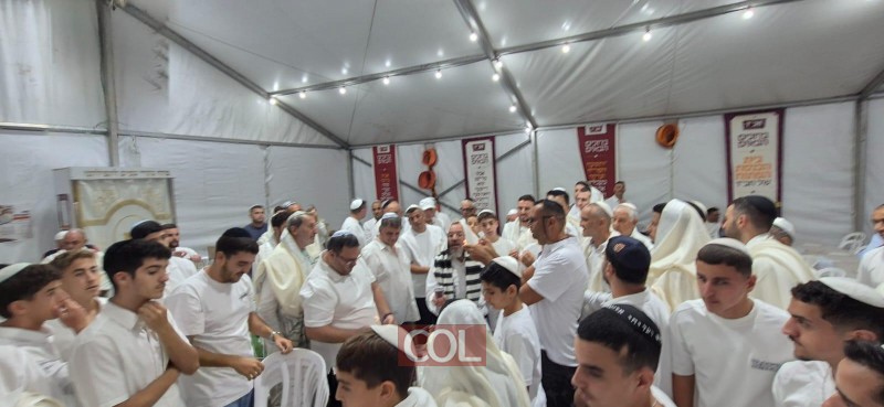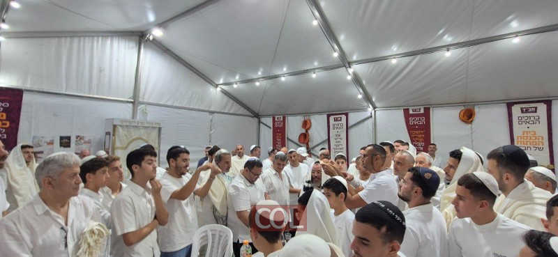 כ-400 איש השתתפו בתפילות החג באוהל הפתוח של בית חב"ד עין הים באשקלון, בראשות שלוחי הרבי - הרב נריה ולילך אמיתי