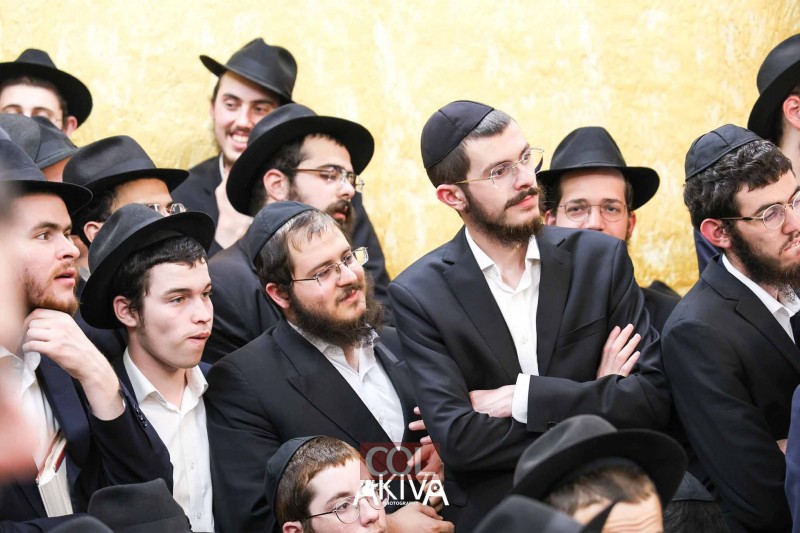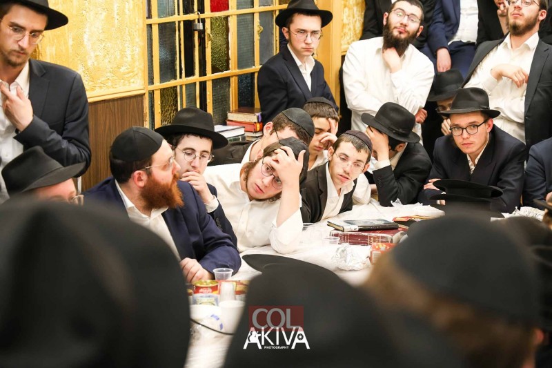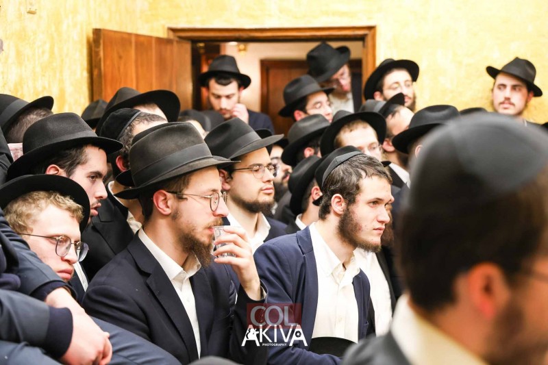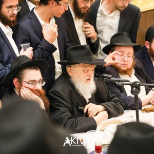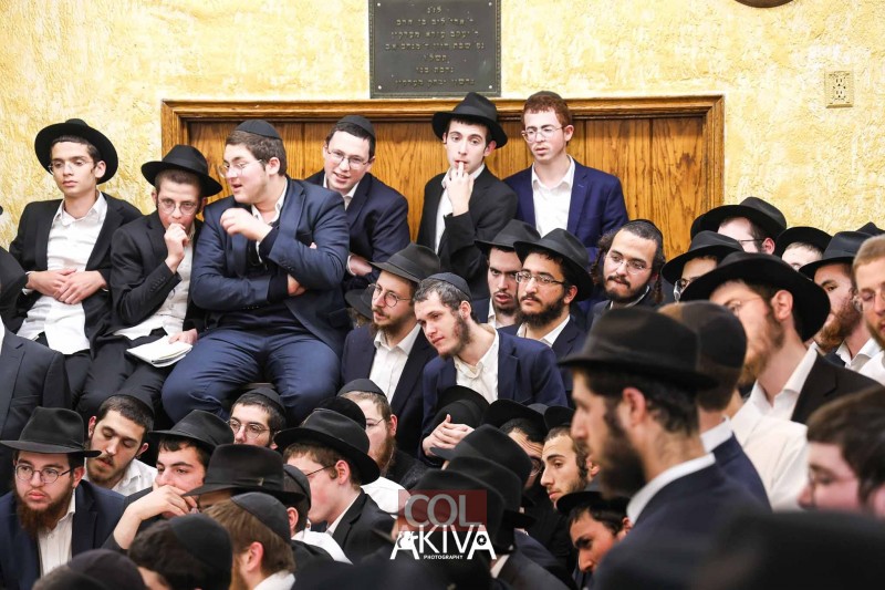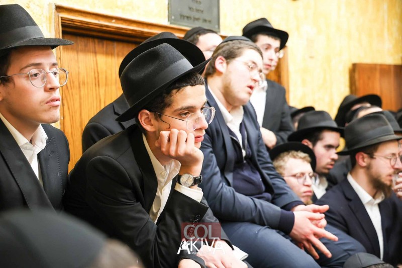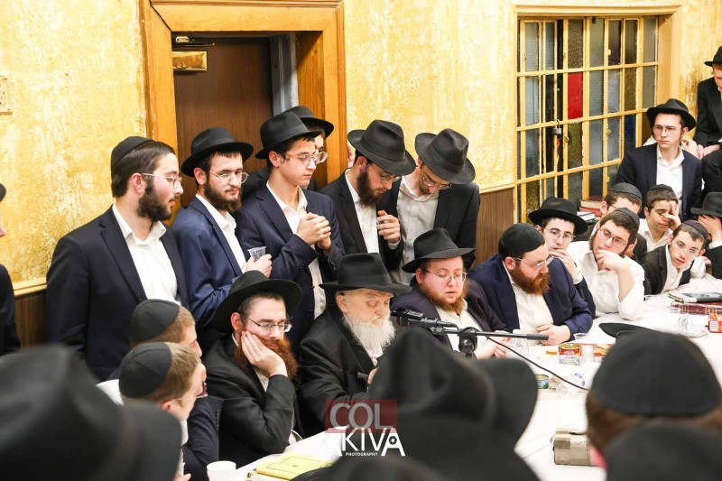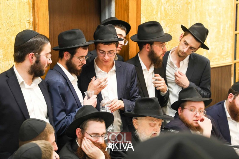 אחרי 25 שעות של תפילה בכיפור: המשפיע הראשי של הישיבה המרכזית ב-770 שבניו יורק, הרב שלמה זרחי, מתוועד עם התמימים בזאל הקטן (צילום: מענדי עקיבא)