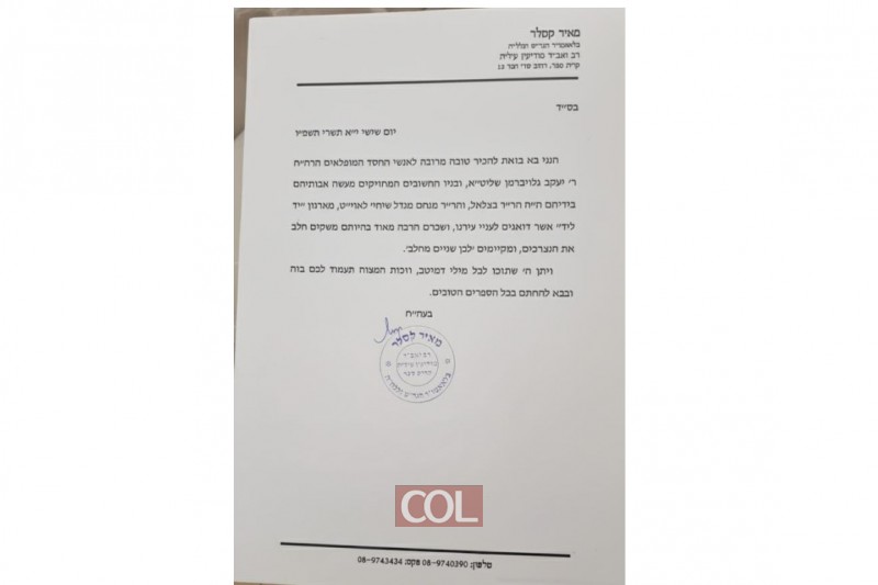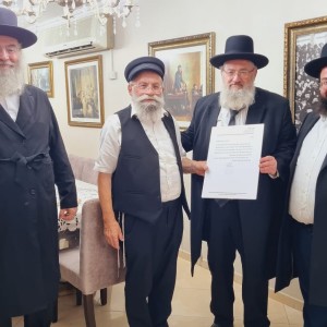משלחת רבנים ממודיעין עילית הגיעה לביתו של יו״ר יד ביד הרב יעקב גלויברמן, להודות על הסיוע למשפחות ואברכים במיוחד לקראת חגי תשרי, והגישו מכתב הוקרה מרב העיר הרב וקסלר