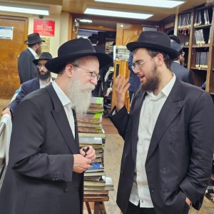 אורח ב-770: המשפיע הראשי של ישיבה גדולה תומכי תמימים בקרית-גת - הרב זושא אלפרוביץ' בשיח עם תלמידיו בחצרות קודשנו (צילום: מענדי עקיבא)