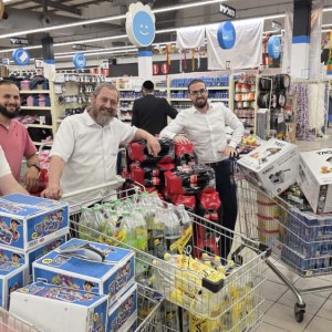 עוד לפני חג הסוכות: גבאי בית הכנסת 'הרשקופ שול' בנחלת הר חב"ד שבקרית מלאכי, ממלאים את עגלת הסופר-מרקט בבקבוקי 'משקה' לשמחת תורה