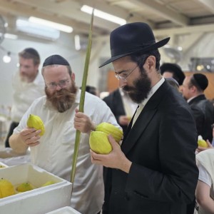 מהדר במצווה: רב קהילת חב"ד ברמת בית שמש ג' - הרב אליהו גלוכובסקי, רוכש ארבעת המינים לקראת חג הסוכות, יחד עם שליח הרבי הרב בנימין מנדלסון