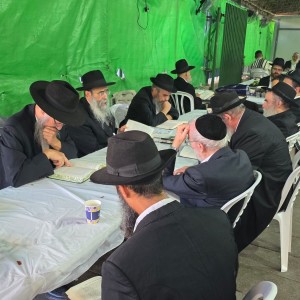 בוקר של חול המועד בקהילת חב"ד ברחובות: המרא דאתרא, סגן מזכיר בי"ד רבני חב"ד, הרב מנחם מענדל גלוכובסקי שליט"א, בשיעור חסידות לפני תפילת שחרית בסוכת בית הכנסת המרכזי