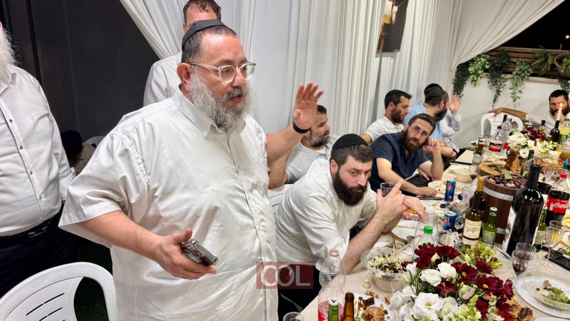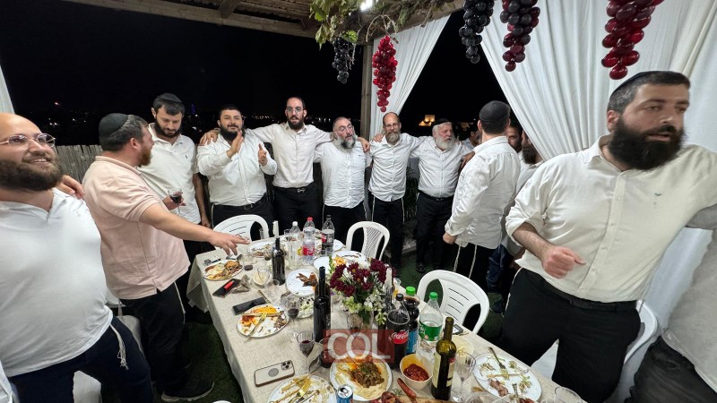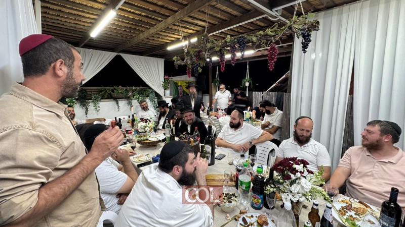 עשרות אברכים מתפללי בית הכנסת 'גבעת ליובאוויטש' בכפר חב"ד השתתפו בהתוועדות חסידית עם המשפיע בית הכנסת - הרב שמעון גופין, בסוכה שנבנית כמידי שנה בחצר, התוועדות שנערכה עד לשעות הקטנות של הלילה סביב שולחנות ערוכים