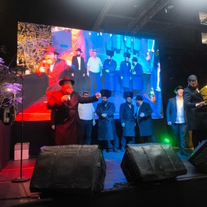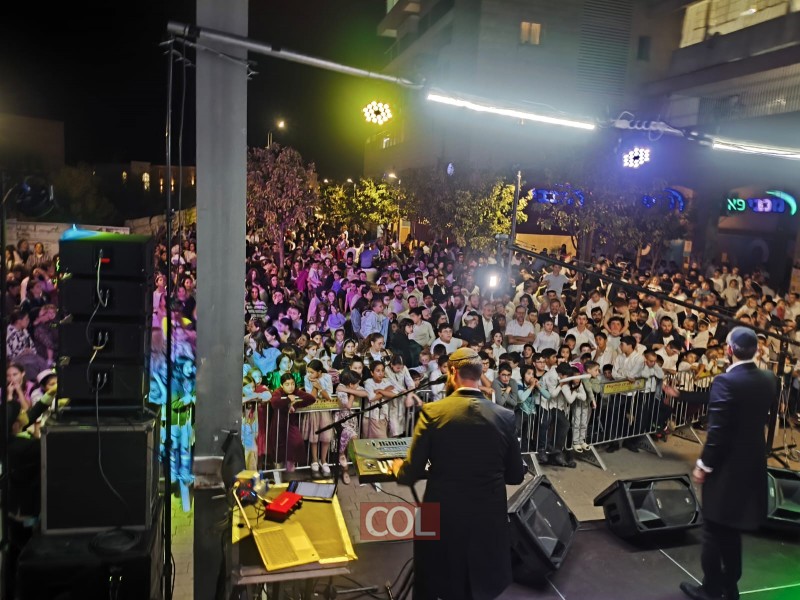 מאות משתתפים הערב מוצאי שבת חול המועד סוכות בשמחת בית השואבה ברמת בית שמש ג', בראשות השליח הרב בנימין מנדלסון ורב הקהילה הרב חיים אליהו גלוכובסקי | הזמר החב"די שמחה פרידמן יחד עם להקת מנגנים מרקידים את הקהל בניגוני חב"ד