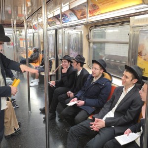 בכוח המשלח: קבוצת תמימים חב"דיים שהיו בדרכם מקראון הייטס לשמחת בית השואבה בשכונת בורו-פארק שבברוקלין, פצחו בריקוד חסידי בתחנת הרכבת התחתית - הסבואי הניו-יורקי. הצלם מאיר דהן שפגש אותם - תיעד את המחזה
