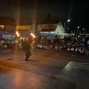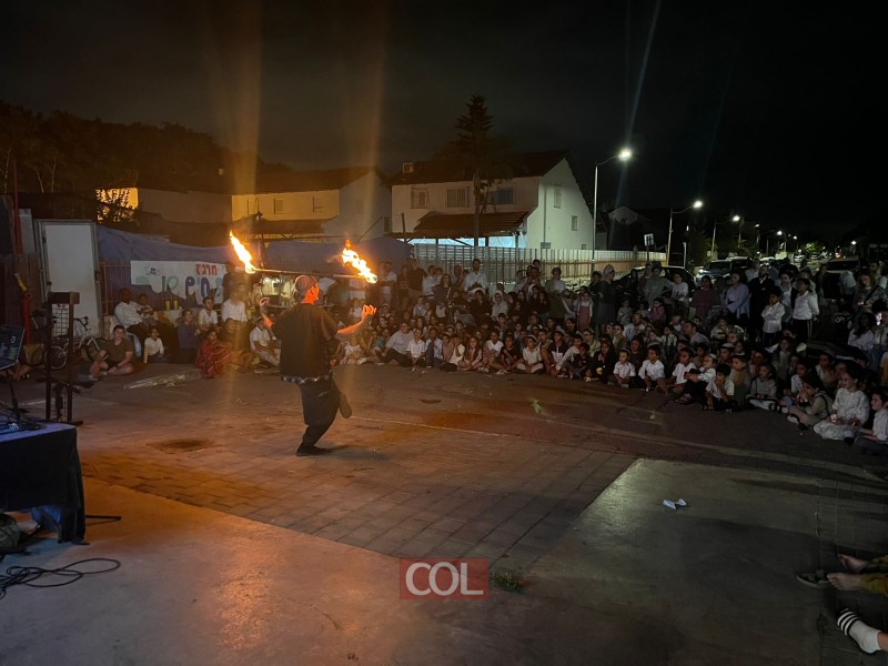 למעלה מ-200 איש הגיעו לשמוח בשמחת בית השואבה של בית חב״ד מרכז שפירא בניהול הרב רפאל גולדמיץ והרב יצחק אמרבי | המשתתפים נהנו ממופע אש להטוטים מרהיב, תקליטן וריקודים | כיבד בנוכחותו ראש המועצה מר אדיר נעמן