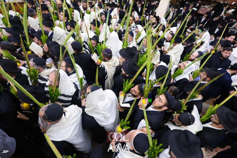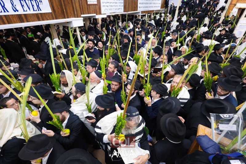 'הלל' ו'נענועים' של אלפים: תפילת שחרית חול המועד ב-770