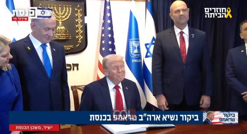 נשיא ארה"ב דונלד טראמפ הגיע לביקור בכנסת, מלווה בראש הממשלה בנימין נתניהו.
