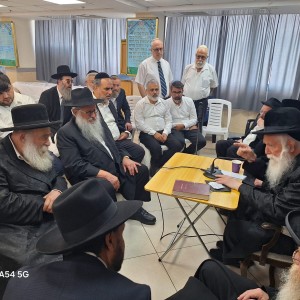 רבה של קהילת חב"ד במגדל העמק וחבר בית דין רבני חב"ד הרב ישראל יוסף הענדל, וגאב"ד מאקאווה הרב שמעון למברגר, בניחום אבלים אצל רב העיר הגרי"ד גרוסמן, היושב 'שבעה' על אחיו הרב מנחם בן ציון ע"ה