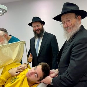 רב האוניברסיטה היהודית במוסקבה - השליח הרב דובער גולדברג, בברית מילה לסטודנט יהודי, כאשר בסנדקאות כובד אביו - הרב ישראל גולדברג מהשלוחי הרבי בצרפת