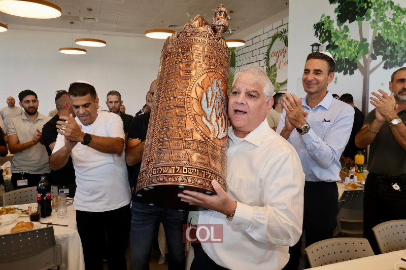 רב העיר לוד החב"די - הרב שמעון מאיר ביטון, השתתף בטקס הכנסת ספר תורה לבית הכנסת במטה 'רכבת ישראל' הסמוך לשיכון חב"ד, שהוכנס לע"נ הנרצחים והחללים בני משפחותיהם של עובדי הרכבת (צילום: שבתאי טל)