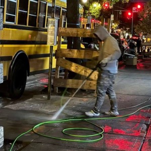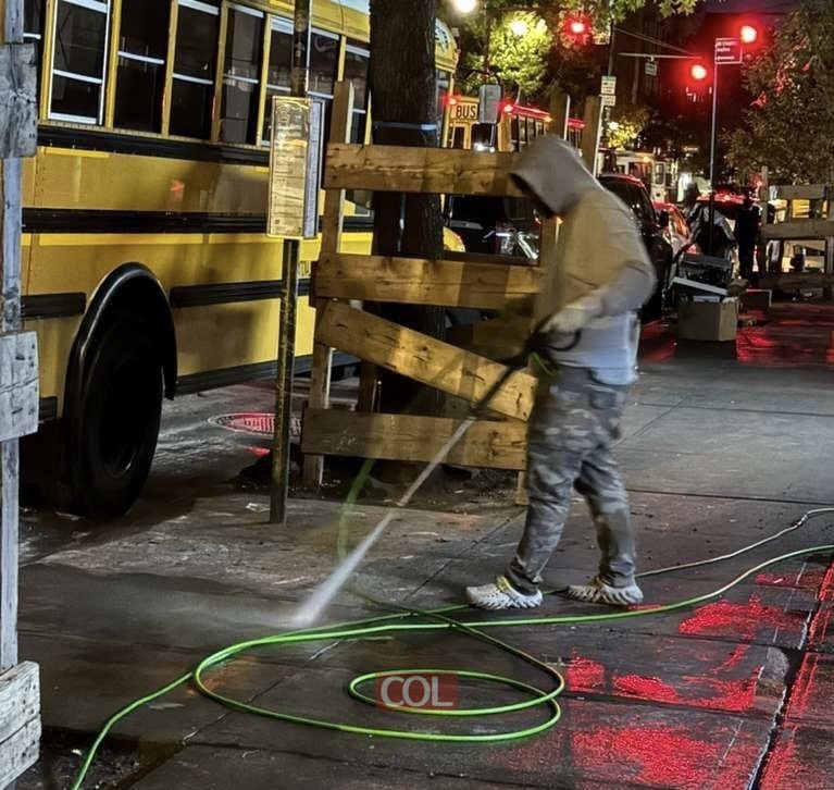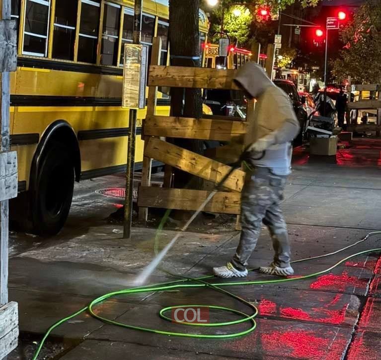 צוות ניקיון ביוזמת הפעיל סם שטרן נראה השבוע מנקה אשפה ושוטף במים את רחובות שכונת קראון הייטס, לאחר סיום חודשי תשרי העמוסים באורחים