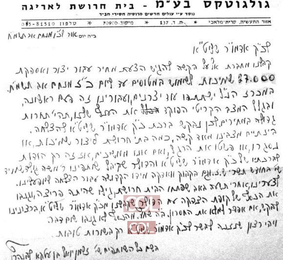 אחת הדוגמאות המרגשות שהשתמרו היא מכתבו של ר׳ זלמן אל הרבי בעת שהגיעה אל גולגוטקס פנייה יוצאת דופן: הזמנה להכין הצעת מחיר לייצור 27,000 שמיכות עבור מטוסי אל־על. ר׳ זלמן כתב לרבי כי מדובר באפשרות לפתח את המפעל ולחזק את פרנסת אנשי הקהילה, וביקש ברכה להצלחה. הפנייה מעידה על רמת התפעול הגבוהה שאליה הגיע המפעל, ועל רוח השליחות שביקשה לקחת כל הזדמנות ולהפוך אותה לכלי של קודש ושל חיזוק אנ״ש.