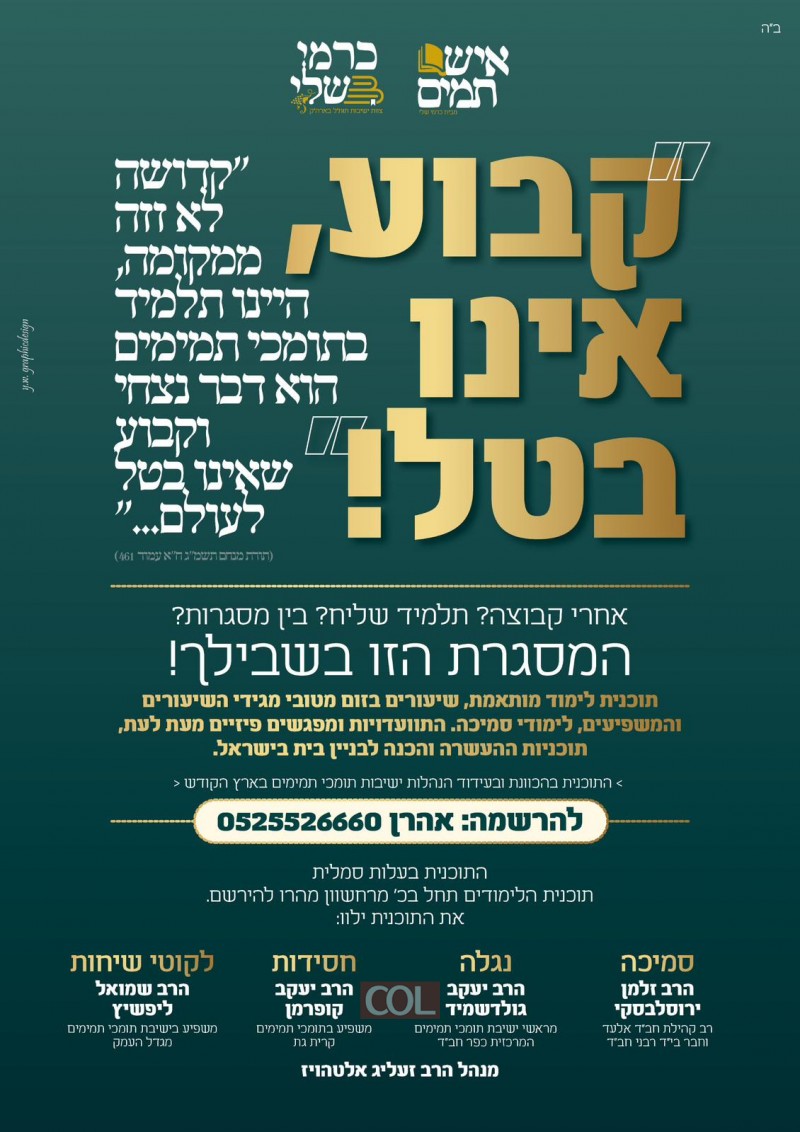 בשעה טובה ב״ה ההרשמה לתוכנית ״איש תמים״ נפתחה.