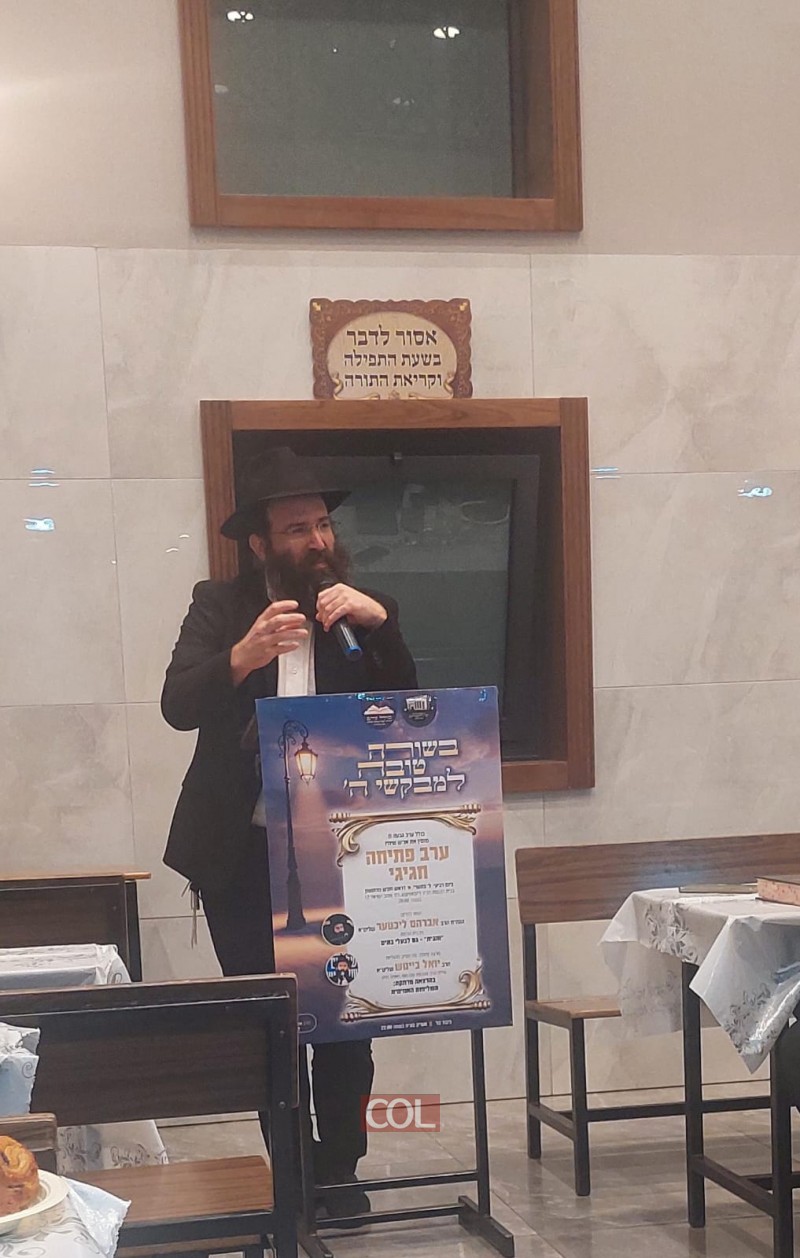 את הערב הנחה בטוב טעם הרב מ"מ הכהן שיחי' רוט, משפיע בישיבת תו"ת המקומית שדיבר על המעלה הגדולה לה זכתה הקהילה בהקמת כולל ערב בו יהגו אנ"ש שיחיו בתורה הקדושה בערב בתוככי בית הכנסת.