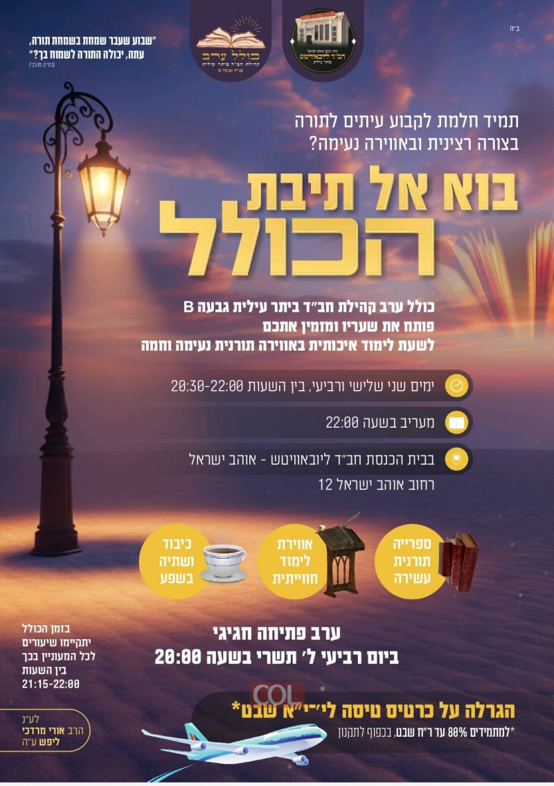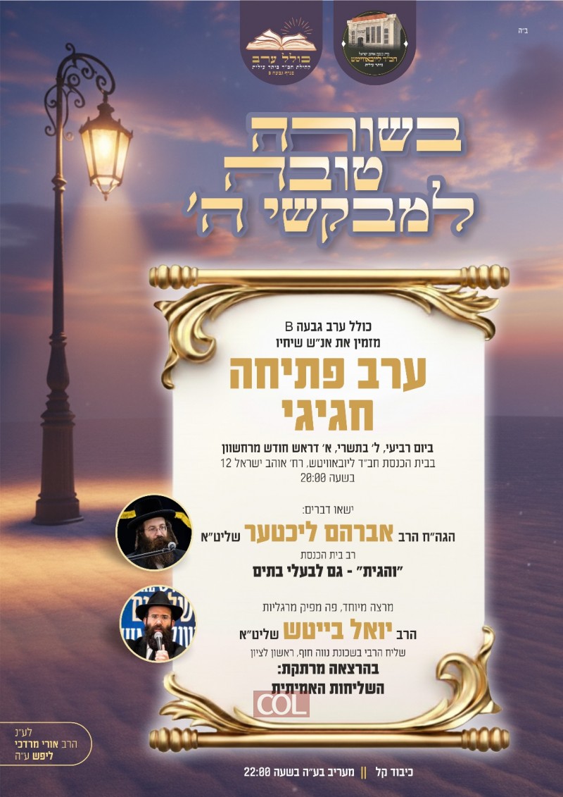 ביום רביעי, ר"ח מר חשוון, התקיים אירוע פתיחה חגיגי לכולל ערב חדש ויחודי בבית הכנסת חב"ד ליובאוויטש אוהב ישראל.