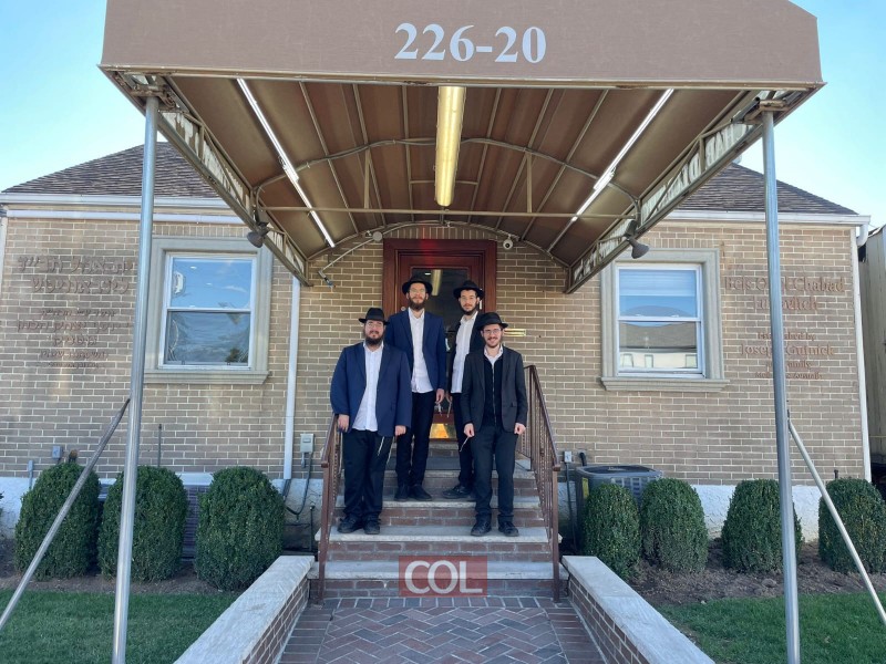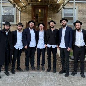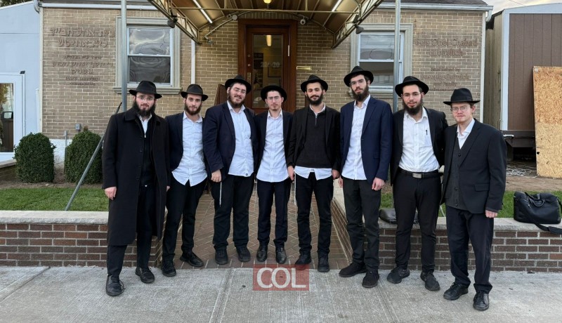 רגע לפני נסיעתם ארצה בסוף שנת ה'קבוצה' בחצרות קודשנו: התלמידים השלוחים לישיבה הקטנה והגדולה בקרית-גת, בתצלום משותף לאחר התפילה אצל הרבי ב'אוהל' הקדוש בניו יורק