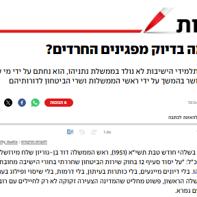 כשרחובות ירושלים גדושים במאות אלפים חרדים מכל רחבי הארץ, כדאי להיזכר בעובדה הפשוטה: הפטור לתלמידי הישיבות, לא נולד בממשלת נתניהו, הוא נחתם על ידי מי שבנה את צה"ל, ואושר בהמשך על ידי ראשי הממשלות ושרי הביטחון לדורותיהם. משה דיין לא שינה את המודל, גם אחרי ששת הימים. שמעון פרס אפילו הרחיב את ההסדר. מייסדי המדינה הבינו משהו שהיום יש מי שמנסה להשכיח: צבא חזק צריך בסיס רוחני חזק יותר.