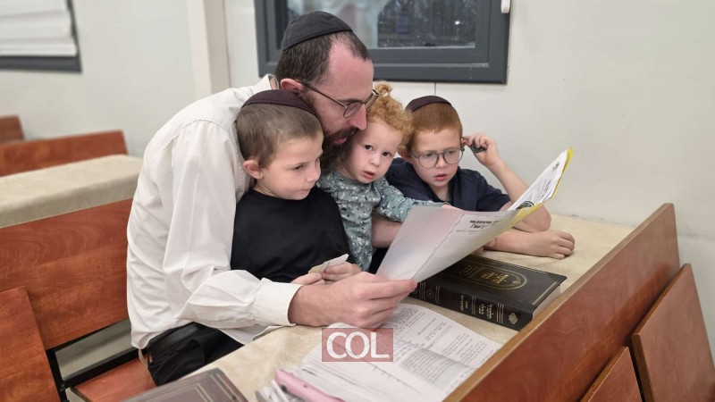זמן חורף הגיע ואיתו שעת ה'אבות ובנים' בקהילות חב"ד ברחבי ארה"ק. בתמונה: לימוד בצוותא בצאת השבת בבית הכנסת חב"ד ברמת בית שמש ג'