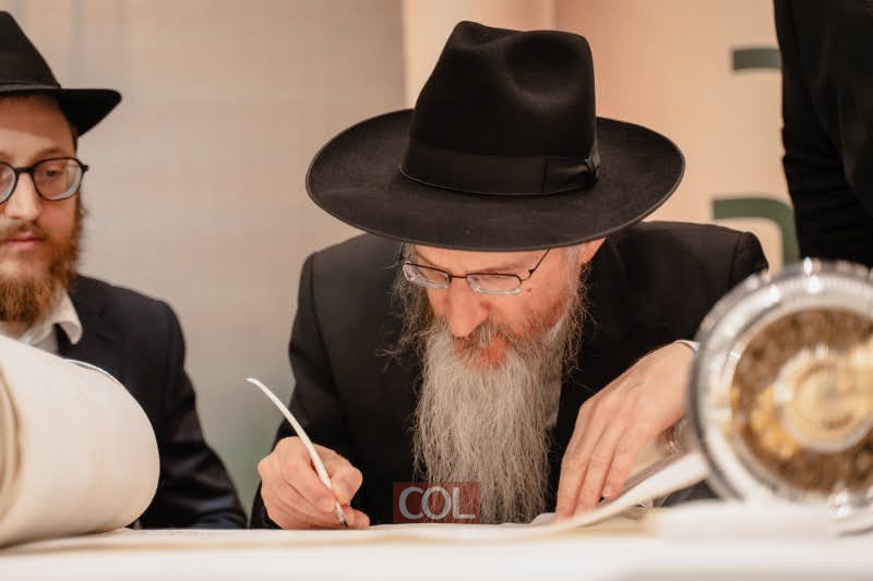 את החגיגה שנערכה בהיכל בית הכנסת, הנחה בכשרון רב ידיד המשפחה, השליח המחנך הרב אברהם אלימלך גדז', שהזמין את הרב הראשי לסיים את כתיבת ספר התורה החדש.